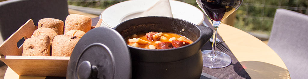 Small “Picadillo” cakes with quail egg, Iberian ham “Jamón Ibérico” and vidiago cheese flakes and rice blood sausage with apple jam 12€